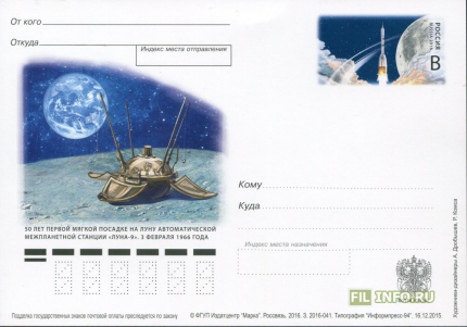 Серия "Покорение космоса". 50 лет первой мягкой посадке на луну автоматической межпланетной станции "Луна-9" 3 февраля 1966 года .