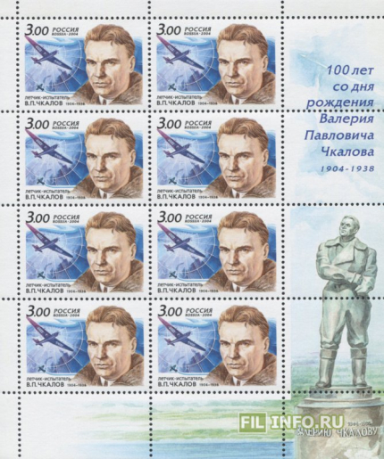 100 лет со дня рождения В.П. Чкалова (1904-1938), летчика-испытателя.