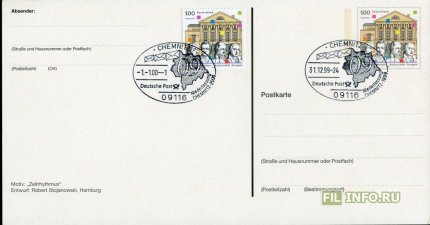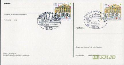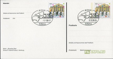 Страна: Германия Год: 2000 Вид коллекционирования: Спецгашения Дата добавления: 04.02.2021 |